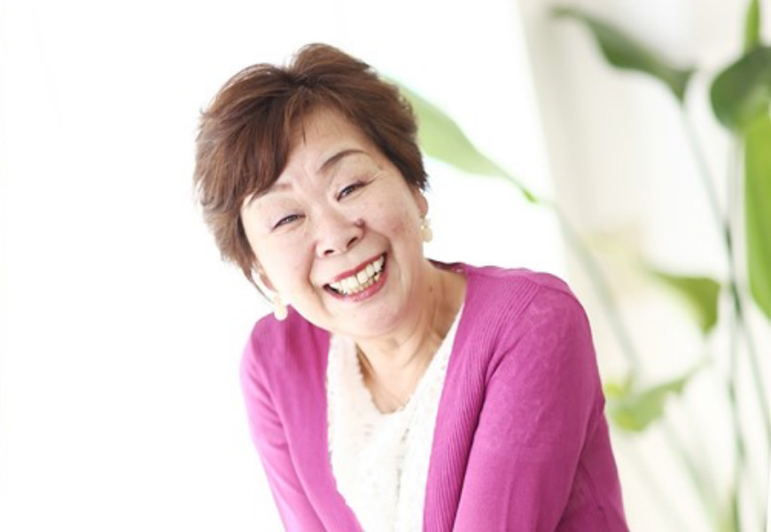 C様は腕の関節を伸ばしていただくことで若さを出し、髪の毛のボリュームを出すことと肩の力を抜いていただくことで、全体的にスリムさと活動的な印象をつくりました。さらに服をシアン系のピンク色に変えていただくことで、若々しい爽やかなイメージにしました。